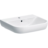 Umywalka GEBERIT Smyle prostokątna-owalna, biała, 550mm, otwór na baterię na środku, z odpływem przelewowym, półka od ściany